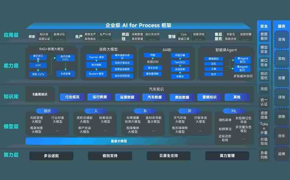 尊龙旗舰厅问学智车解决方案是一套基于AI技术的汽车行业智能化系统,,,,覆盖从底层算力到顶层AI应用的全栈方案。。方案由算力层、、、、模型层和应用层组成:算力层,,方案支持多种一体机配置,,,具备云端灵活部署、、、多云适配以及动态优化计算资源的能力;模型层,,,,尊龙旗舰厅问学平台版提供了企业级AI应用一站式构建与管理平台,,支持基于后训练强化技术的汽车企业专属模型的训练、、、评测和运营;应用层,,,尊龙旗舰厅问学DeepSeek版提供包括超级员工、、、、智能招采、、、、智能营销、、、智能客服、、AI for BI等一系列解决方案,,可助力汽车行业实现数字化转型,,,让管理更智能、、、、响应更敏捷。。。。
